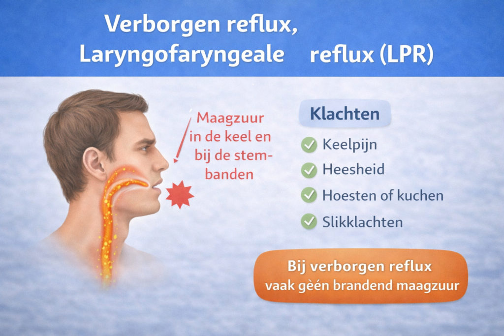 Een bekende complicatie van verborgen reflux en bekend bij longartsen is LPR, oftewel Laryngo-Pharyngeale Reflux, een vorm van supra-oesofageale reflux.
