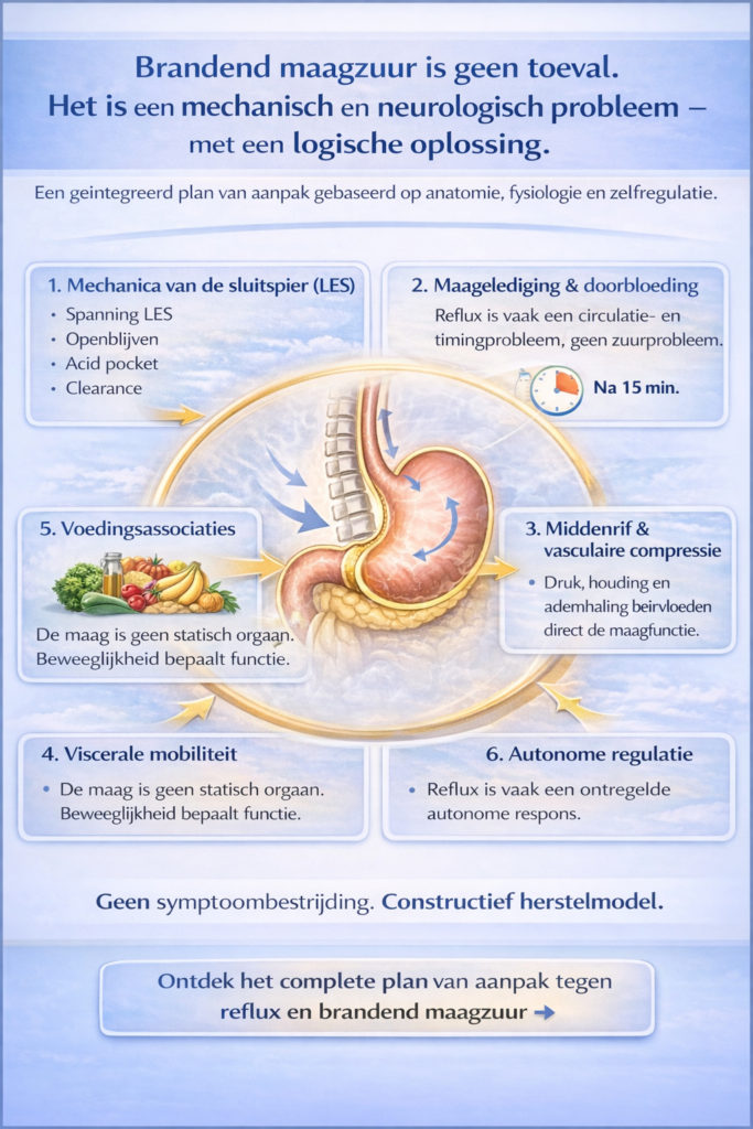 In de praktijk werd me tegelijkertijd steeds meer duidelijk dat bij gastro-oesofageale reflux — het terugstromen van maaginhoud in de slokdarm — een uitsluitend manuele behandeling vaak maar beperkt effect heeft.